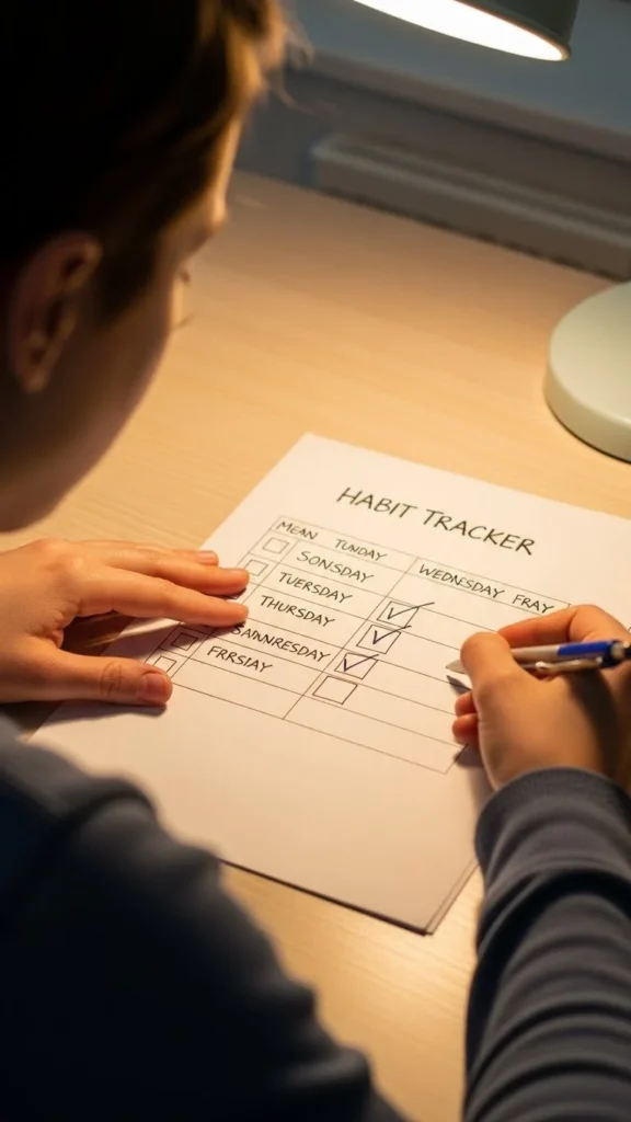 Tiny habits last longer than dramatic plans. Track progress simply.