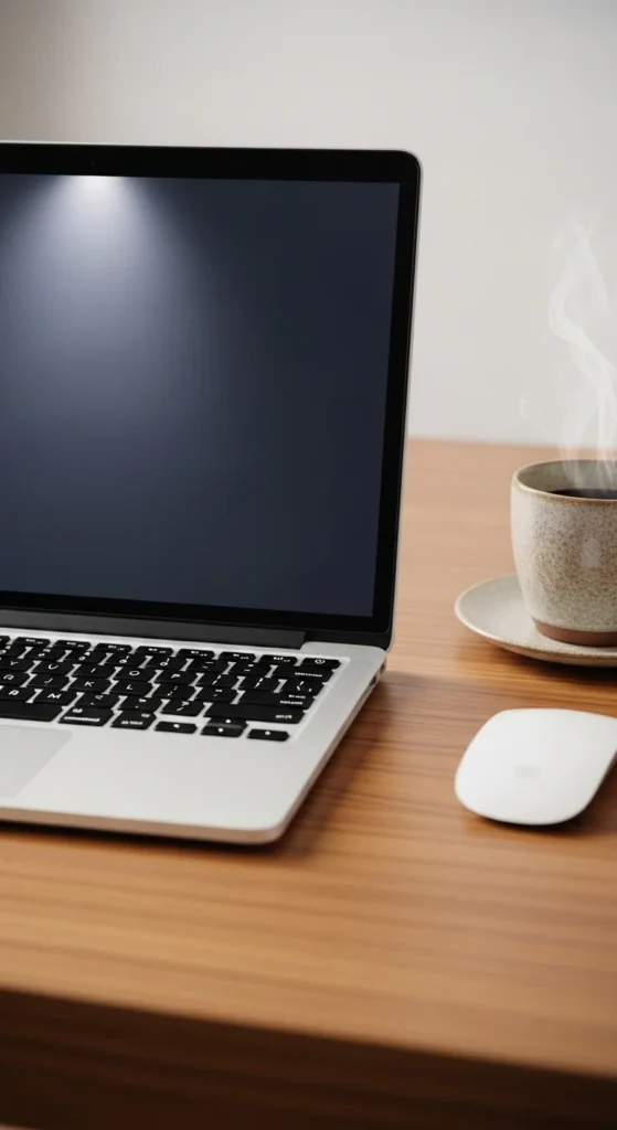 [Image Prompt] A laptop showing an email signup popup with a clean design, surrounded by notes and a cup of coffee.