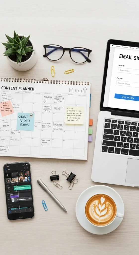 - Days 8–30: publish 3 strong pieces + start email list