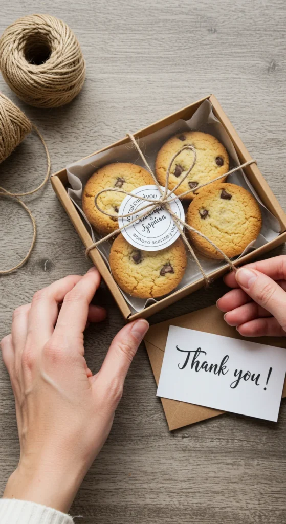 - Use food-safe packaging — boxes, parchment bags, or clear wrap.