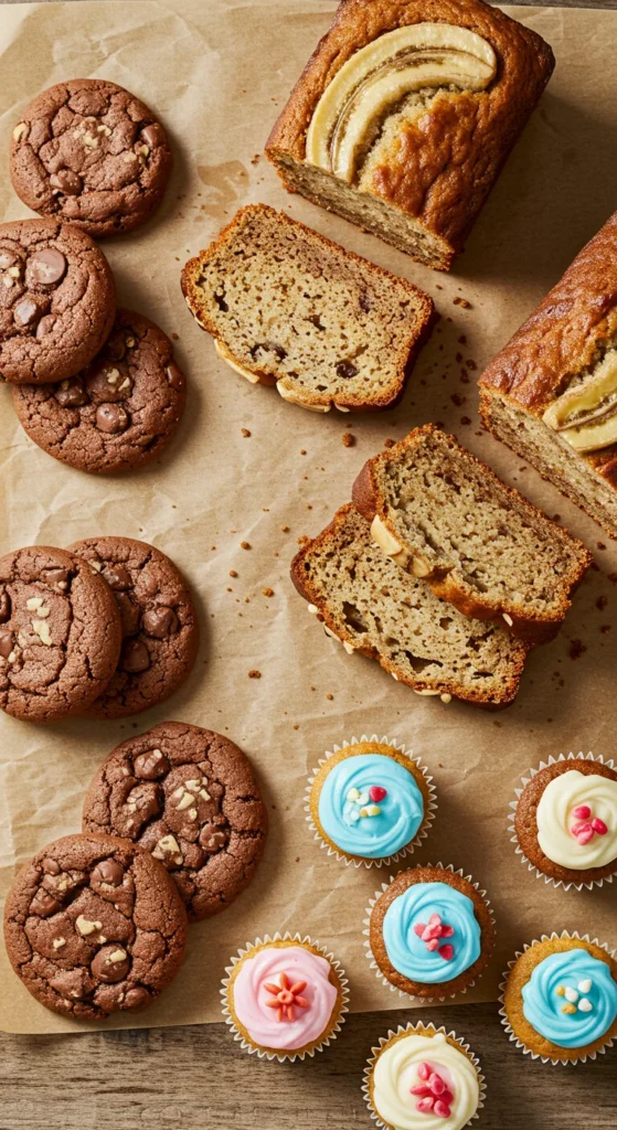 - Loaves & quick breads – banana bread, pound cake, pumpkin loaf