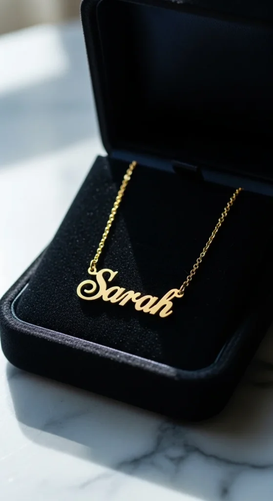 - “Custom name necklace gold”