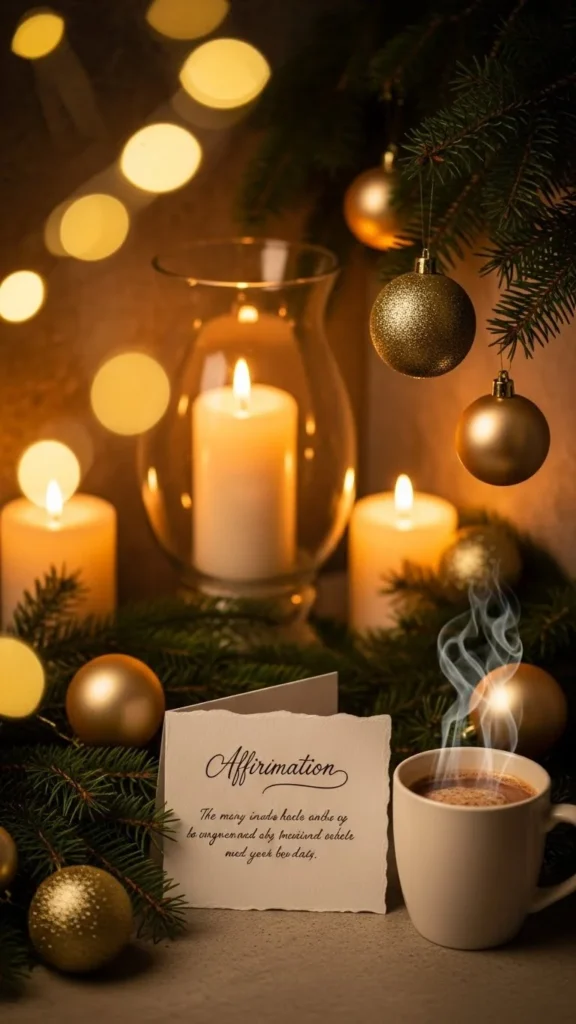 Stand near your favorite holiday decoration. Say the affirmation once. Touch the decoration lightly. This physical gesture helps connect the words to your environment. Add a simple DIY touch—like tying a ribbon or placing a pine sprig nearby—to reinforce the warm tone you want at home.