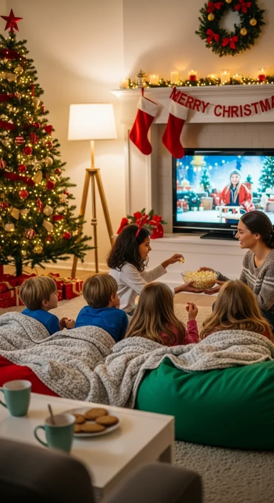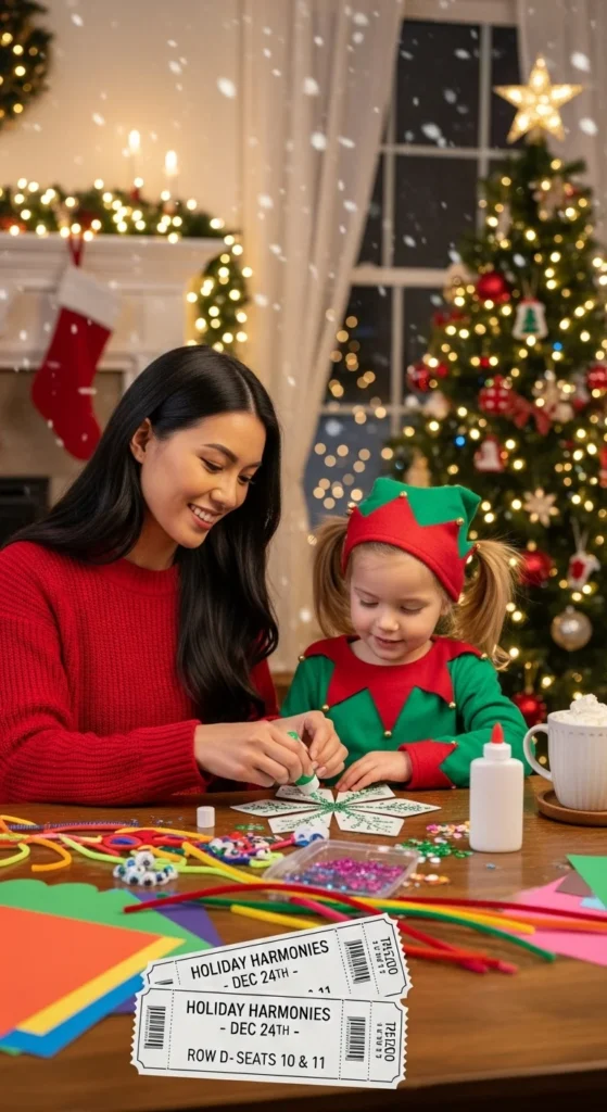 Create mini “movie tickets” for fun. Popular choices include Home Alone and The Polar Express. Parents love the peace, and kids enjoy the holiday experience.