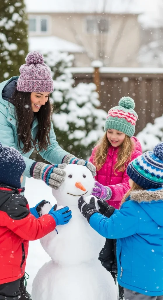Plan safe outdoor fun — snowmen, sledding, and cocoa breaks. Keep backup indoor games ready in case it gets too cold.