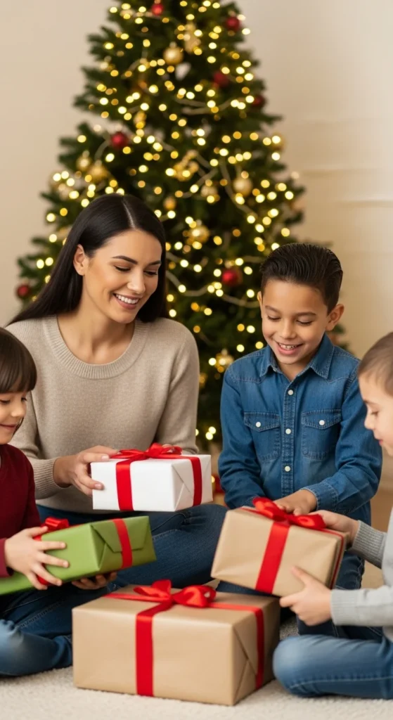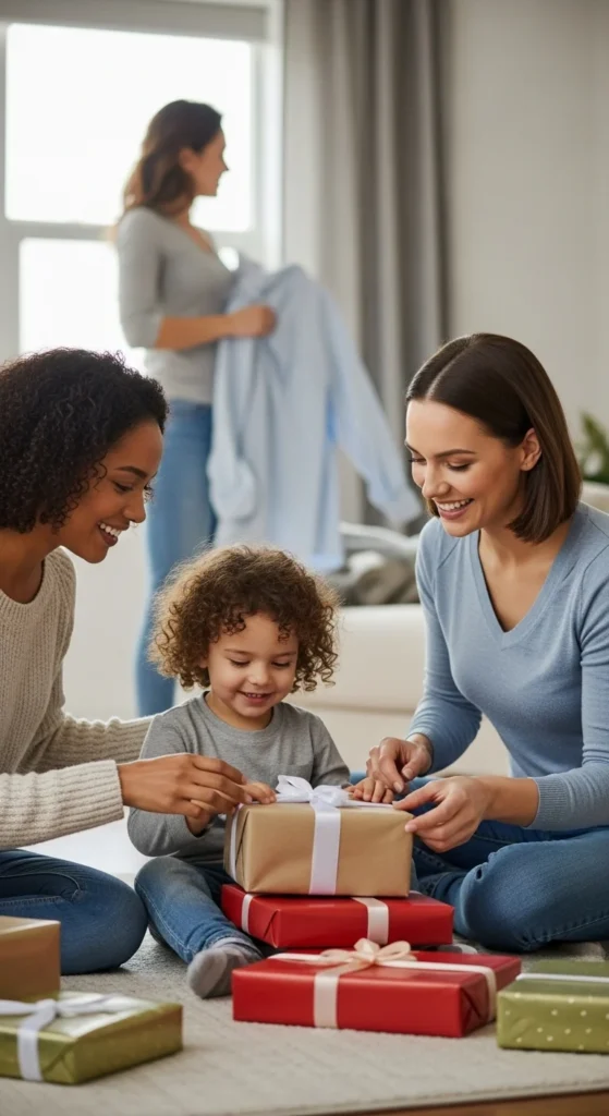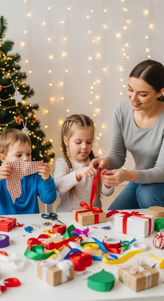 Provide simple wrapping supplies and supervise creativity. Market this as a two-in-one service — childcare plus practical help for busy parents.
