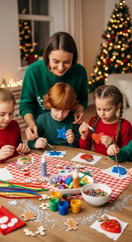 Set up themed craft sessions like ornament painting or card-making. Parents love this because kids stay productive and creative.