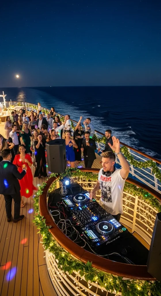 Be versatile—mix lounge tracks for daytime and party anthems for night events. Keep backup USB drives ready since Wi-Fi at sea can be unreliable.