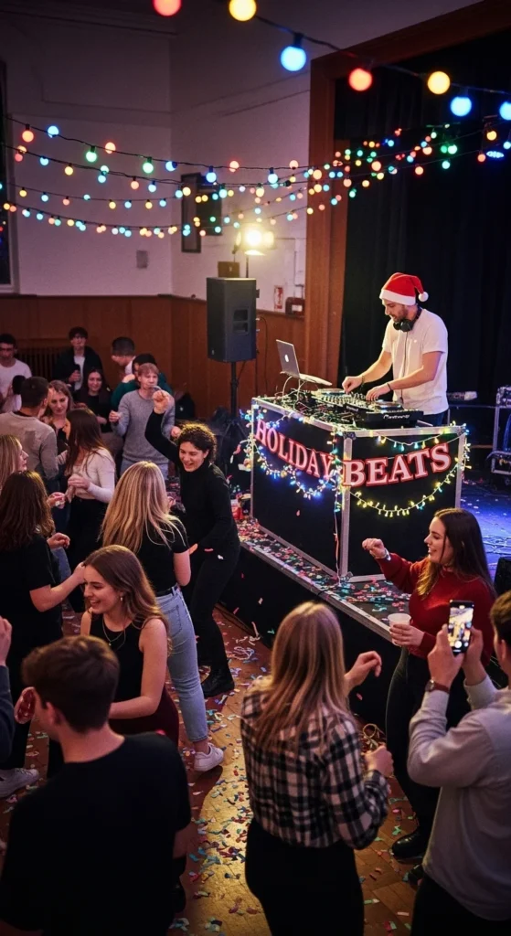 Keep transitions clean, avoid explicit tracks, and include popular hits mixed with light Christmas remixes. Bring your own sound system for small venues and offer to MC student games or contests—it adds value and energy to your set.