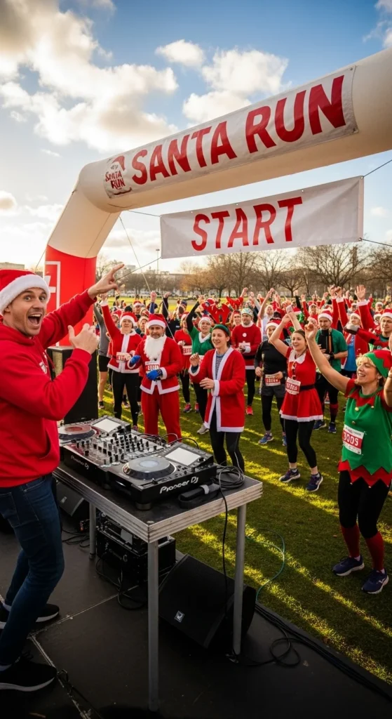 Holiday fun runs and charity races love live DJs to motivate participants. Bring portable speakers and upbeat playlists.