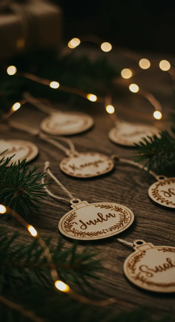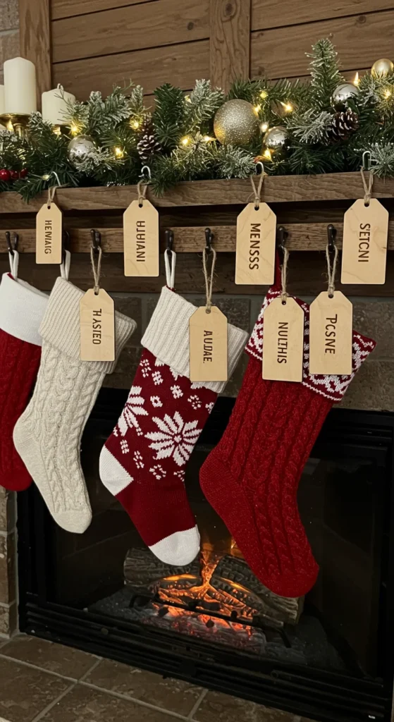 Tags add a personal touch to Christmas stockings. Create wooden, acrylic, or cardstock tags with engraved or painted names. They’re lightweight, affordable, and sell well as family sets.