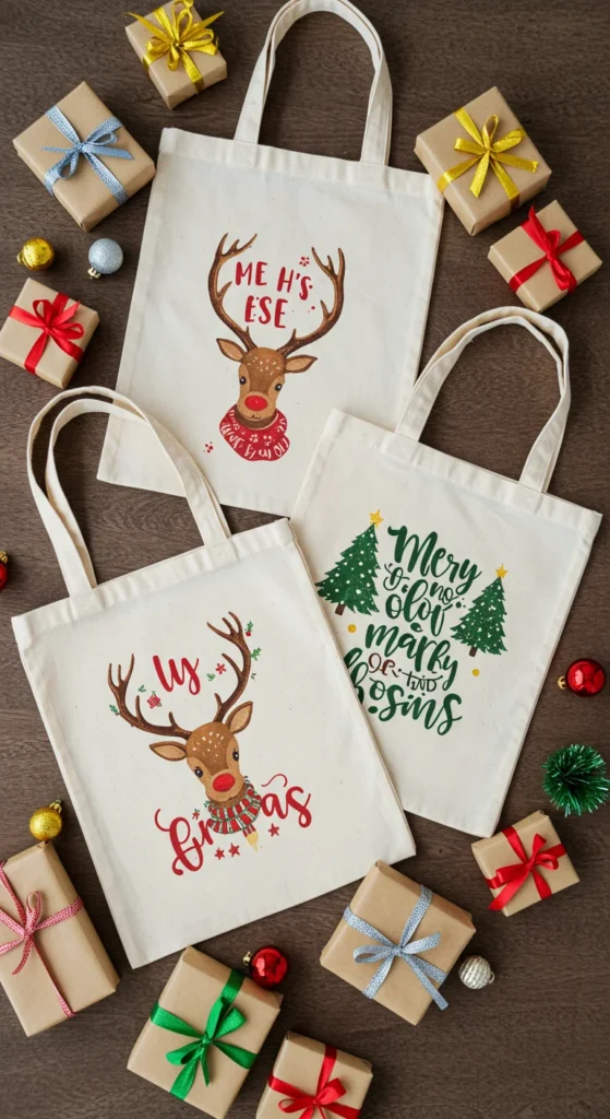 Reusable tote bags are practical and eco-friendly. Create Christmas designs that shoppers can use for grocery trips, gift shopping, or as reusable gift bags. Fabric paint, screen printing, or print-on-demand can all work for production. Simple designs often sell best, especially when priced affordably.
