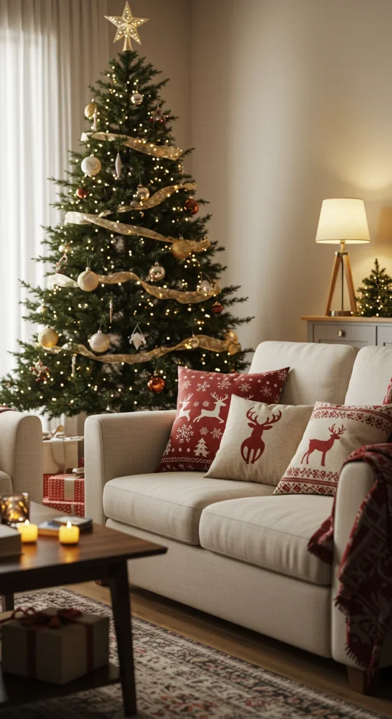 Pillows instantly make homes feel festive. Create pillow covers with seasonal patterns or quotes. Use print-on-demand services or sew covers with fabrics in red, green, and gold. Selling them as slipcovers helps reduce shipping weight.