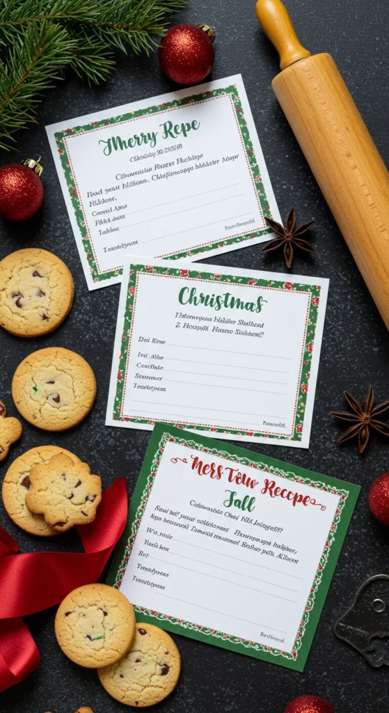 Recipe cards make thoughtful gifts. Create printable or physical sets with holiday illustrations. Shoppers love gifting these with kitchenware or baked goods.