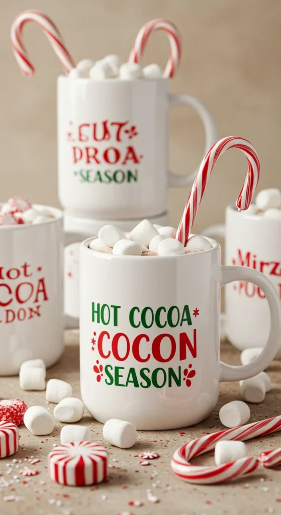 Mugs are a fun and practical gift. Offer customized designs with names, quotes, or Christmas graphics. Use print-on-demand services to handle printing and shipping, or purchase blank mugs and apply vinyl decals at home. Sets of two or four mugs make great holiday gifts for families. Buyers love gifting these alongside hot cocoa kits or homemade cookies.