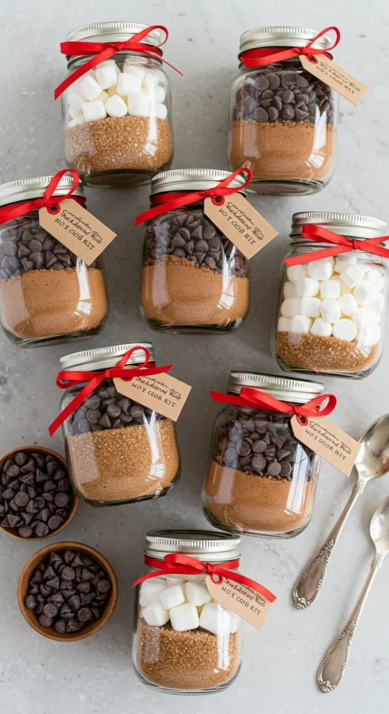 Hot chocolate kits make thoughtful, affordable gifts. They’re easy to assemble and inexpensive if you buy ingredients in bulk. Use mason jars or small bags to layer cocoa mix, marshmallows, and chocolate chips. Add a candy cane for extra charm. Label each kit with simple instructions, then package them with ribbons or festive stickers. Sell them at craft fairs, school events, or online. Families and coworkers love buying these ready-made treats for stocking stuffers and holiday exchanges.