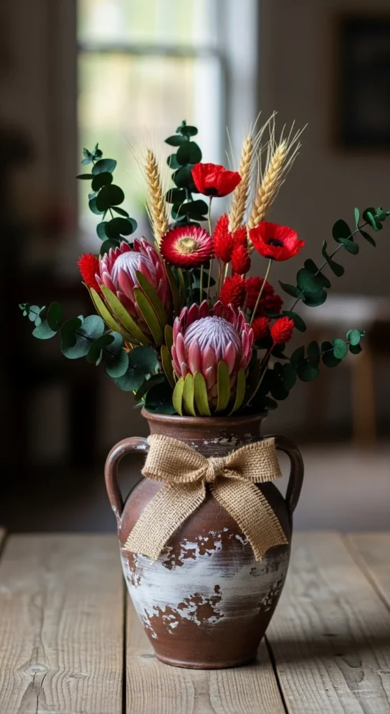 Collect jars in bulk, decorate the necks with ribbons, and fill with simple greenery and faux berries. They photograph beautifully, making them perfect for Etsy or Instagram sales.