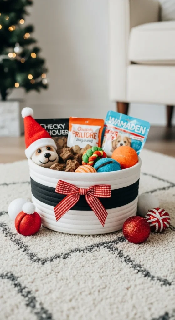 Tie everything with red ribbon and a “Warm Wishes” tag.