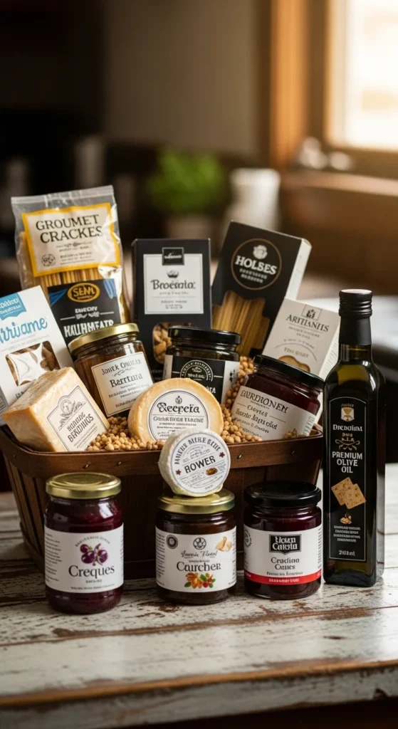 Mix small gourmet items like pasta, sauce, cheese, and jam.