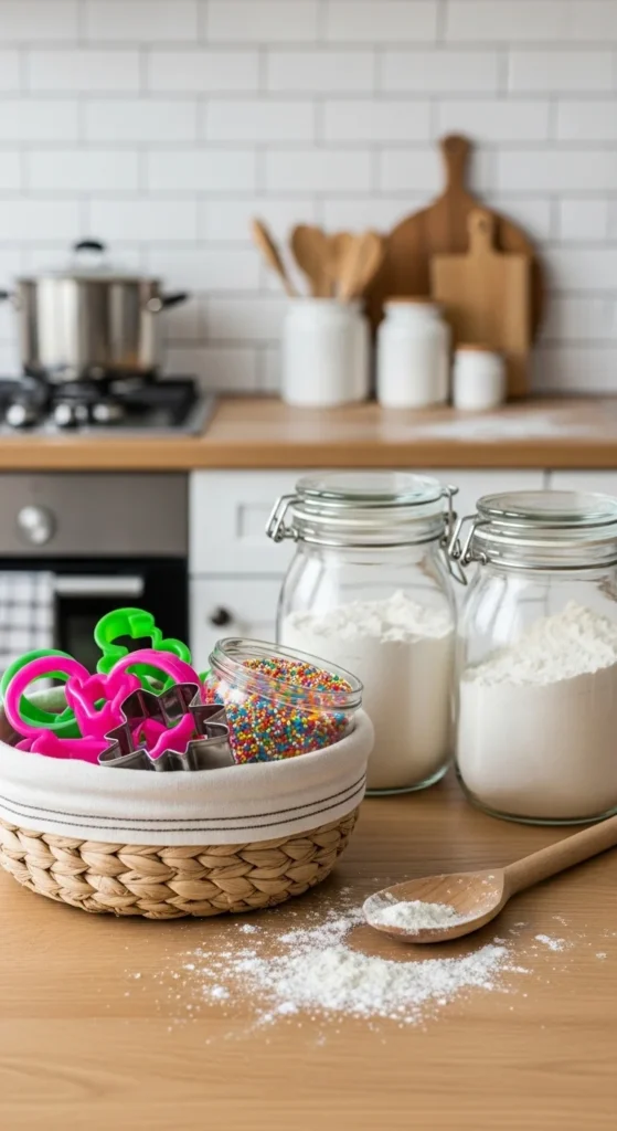 Add cookie mix jars, icing tubes, and Christmas sprinkles.