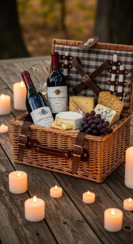 Pair a bottle of red or white wine with artisan cheese and crackers.