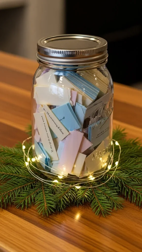 Place a jar somewhere easy to see. Every day, drop in one short note about something that warmed your heart. It might be a kind message from a friend or a small win you usually overlook. You don’t need fancy stationery. Use old receipts, packaging paper, or notebook scraps. Add a little color by using markers you already own. The goal is consistency, not decoration. Over time, the jar fills with reminders that good moments exist even in stressful seasons. Reading them on Christmas Eve can feel uplifting. It’s a simple project that takes almost no money but brings real emotional steadiness. Keep the jar out where you pass it often so you’re gently nudged to add to it each day.