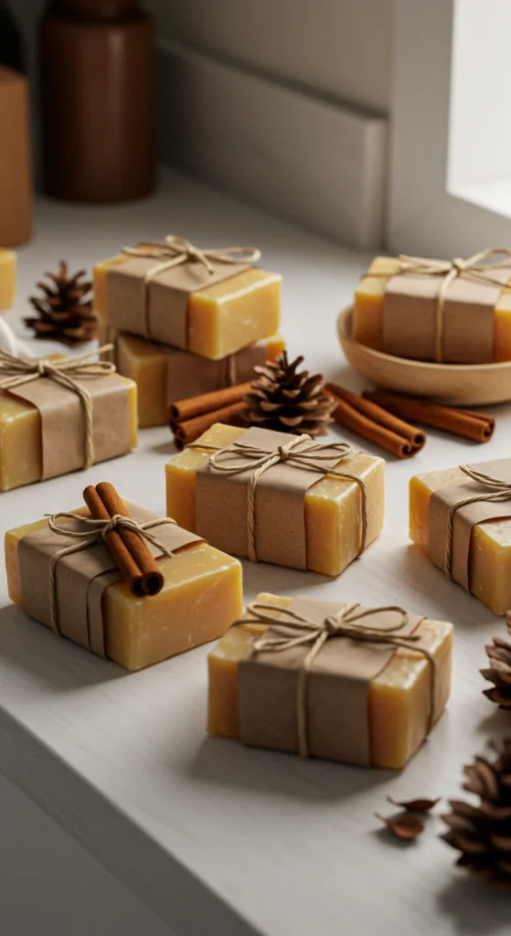 Handcrafted soaps make excellent stocking stuffers. Create holiday scents like peppermint, pine, or vanilla chai.