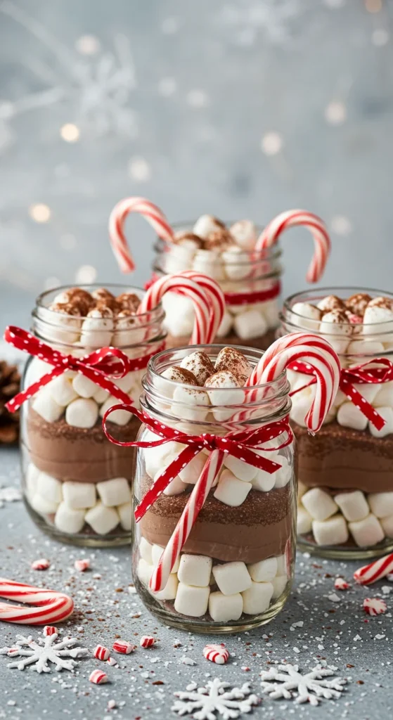 Assembling hot chocolate kits is easy and sells fast. Fill jars or bags with cocoa mix, toppings, and a candy cane stirrer.