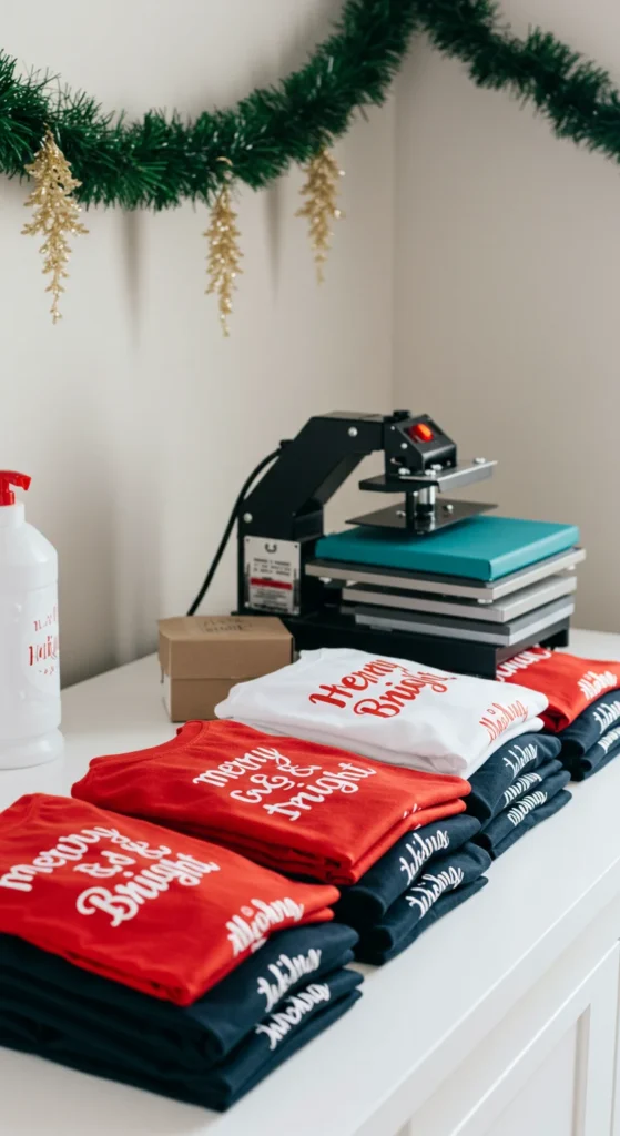 Selling holiday shirts can be simple and profitable. Use a print-on-demand service or a small heat press at home.