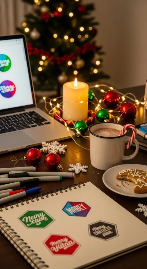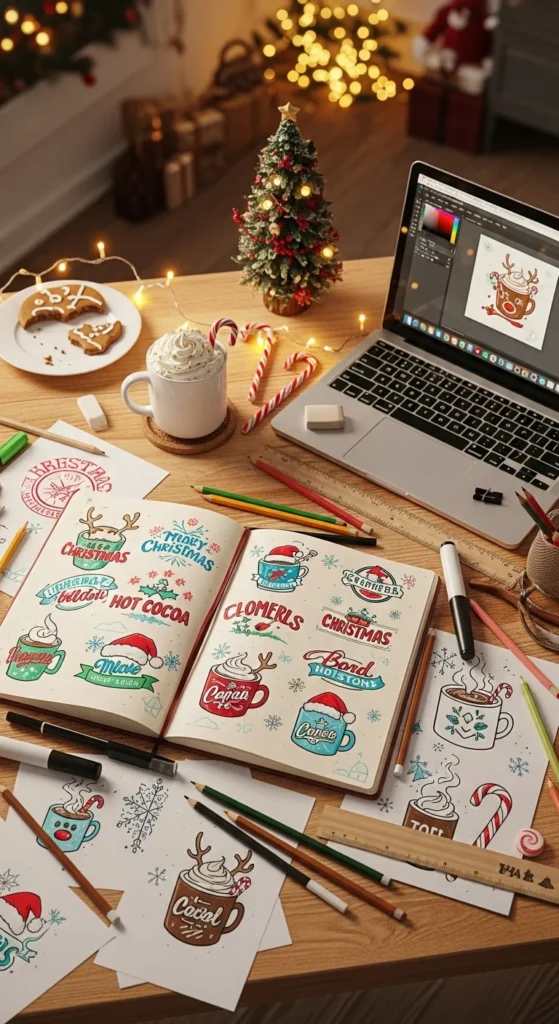 Offer logos with vintage lettering, mug icons, or holly borders.