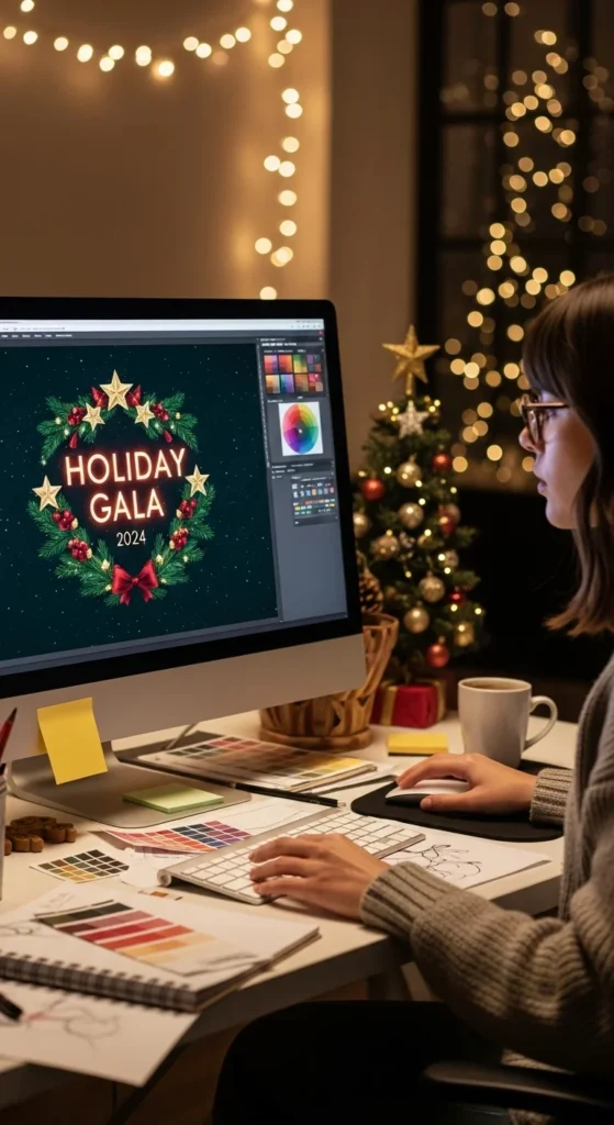 Add snow effects or golden typography for a festive touch.