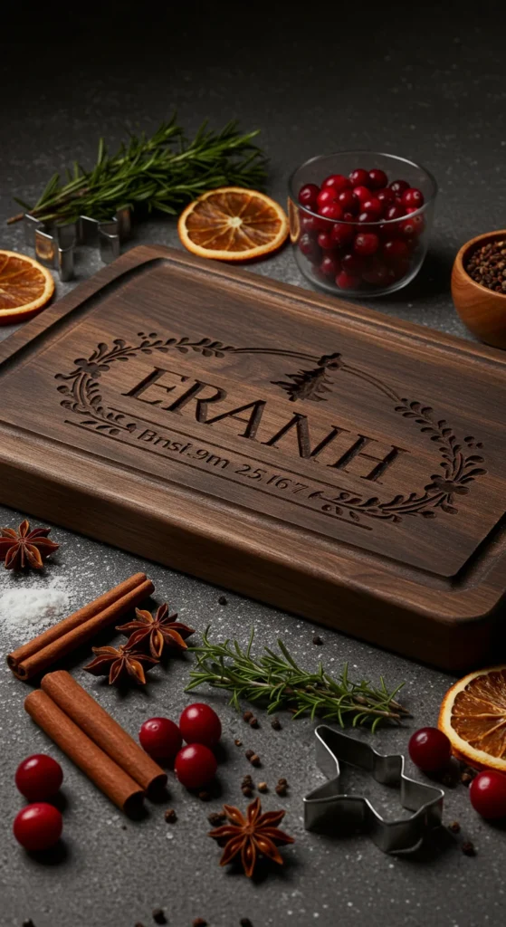 Cutting boards double as functional tools and beautiful décor pieces. Offer engraved designs with family names, festive quotes, or custom artwork.