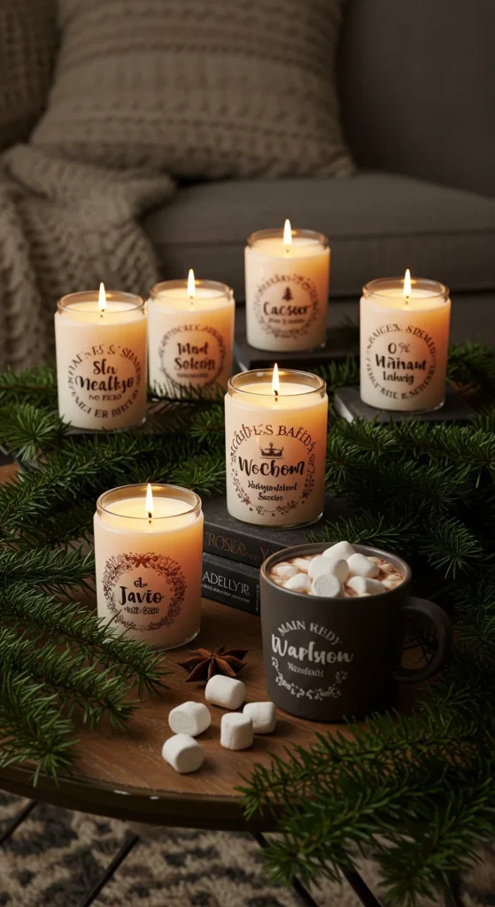 Candles are always popular during winter. POD options let you print custom labels with festive messages, names, or branding.