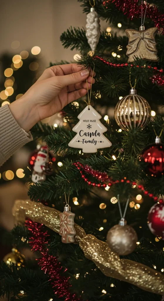 Offer ceramic, wood, or metal ornaments with names, dates, or illustrated family portraits.