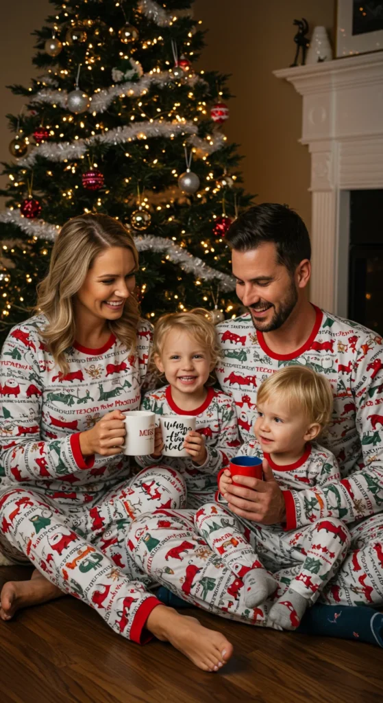 Matching pajamas are a holiday tradition. Families often buy sets for Christmas Eve photos, morning unwrapping, or seasonal parties.