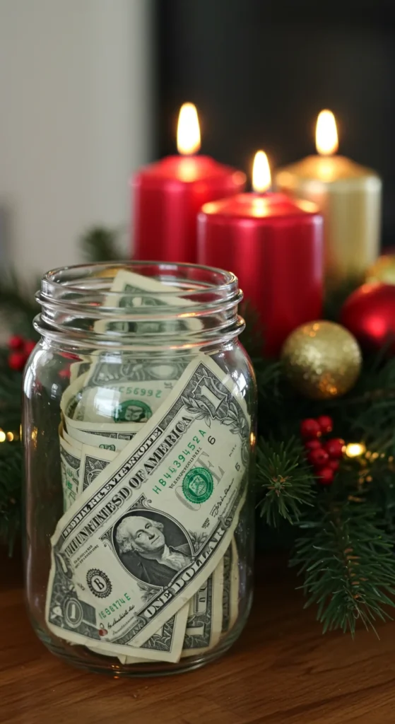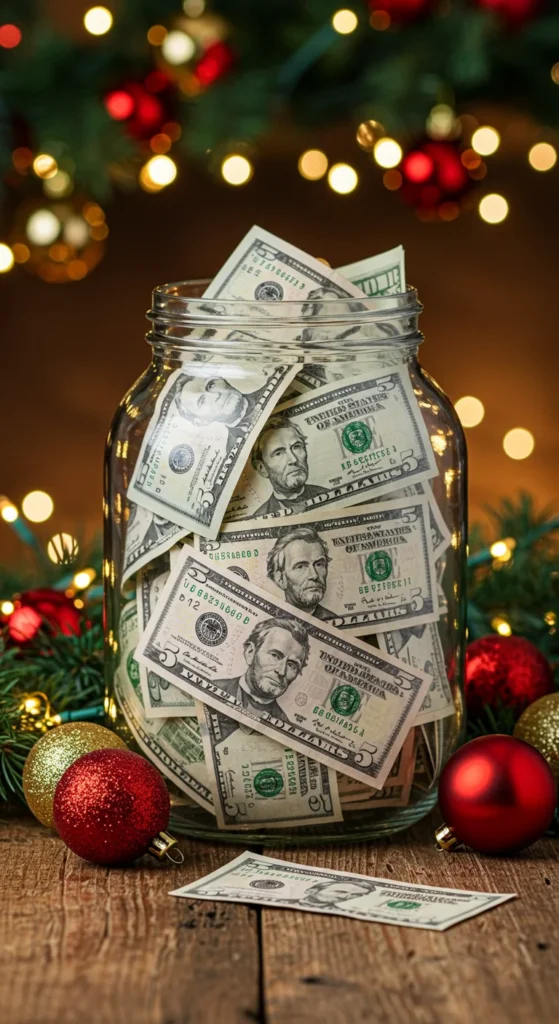 Every time you get a $5 bill in change, set it aside in a jar. By Christmas, those small bills add up faster than you’d expect. This works especially well if you pay in cash often. To keep motivated, use a clear jar so you can watch it fill up. At the end of December, count it up and use it for last-minute holiday shopping or save it for next year’s Christmas fund.