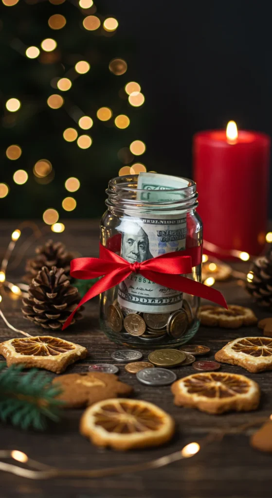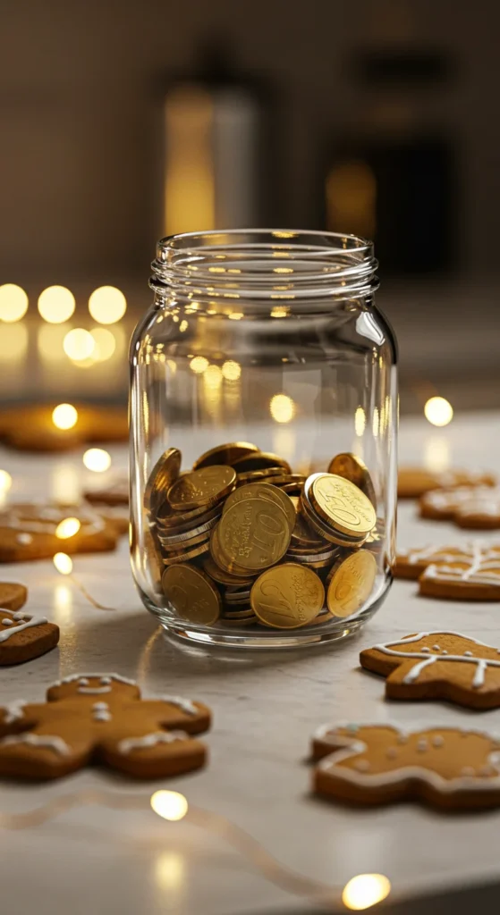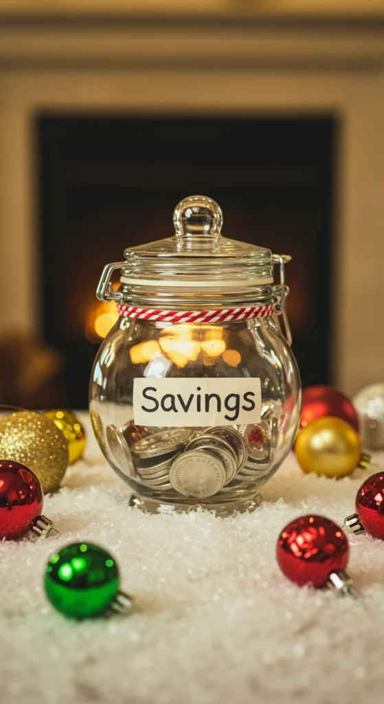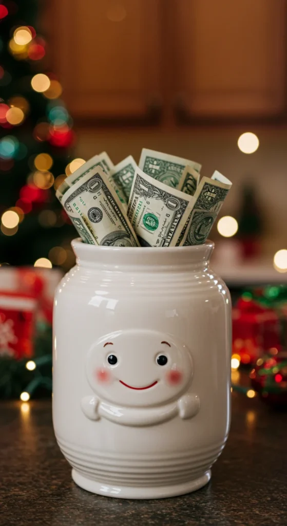 Repurpose a cookie jar into your holiday savings jar. Every time you bake cookies, drop in $5. If you bake weekly during December, it adds up fast. Plus, the jar’s holiday vibe makes it fun to use.