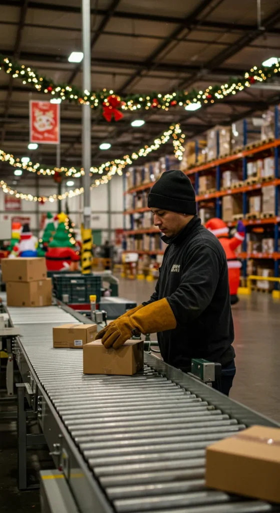 Warehouses become 24/7 hubs during the holidays. Sorters earn strong hourly wages, with extra pay for night shifts. The job involves scanning, lifting, and organizing boxes.