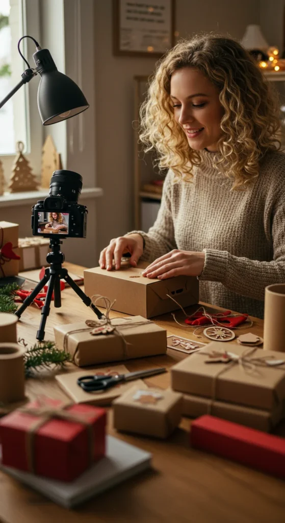 If you sell products, packing order videos are a hit. People love watching small businesses wrap, label, and ship holiday orders.