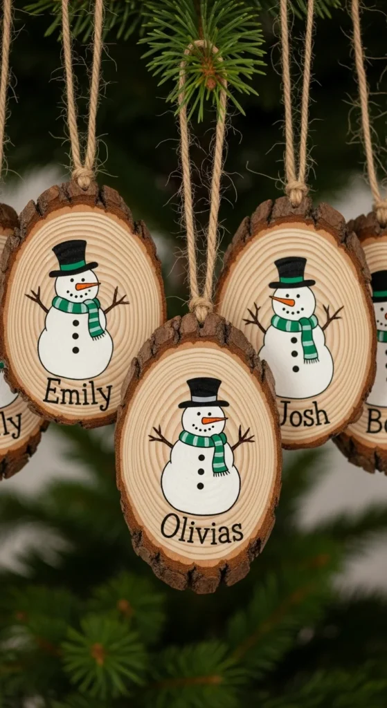 These never go out of style. Create ornaments using scrap wood, then carve or burn simple designs like trees, snowmen, or snowflakes.