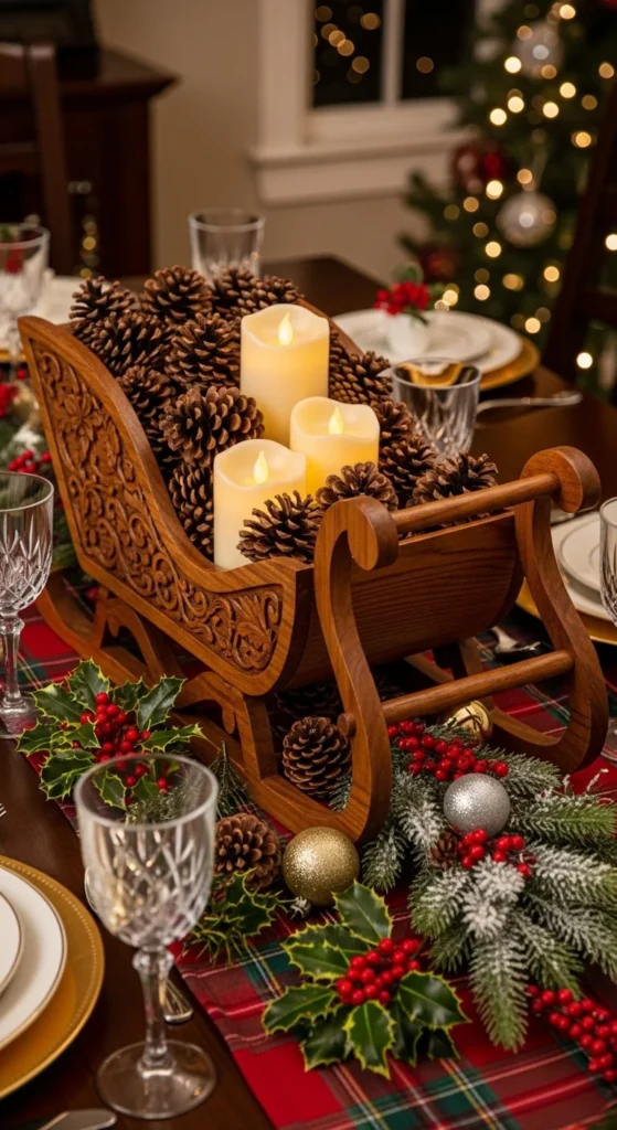 18. Wooden Santa Sleigh Centerpieces