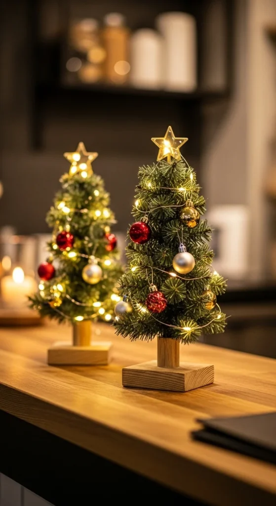 Add tiny wreaths or faux snow for charm.