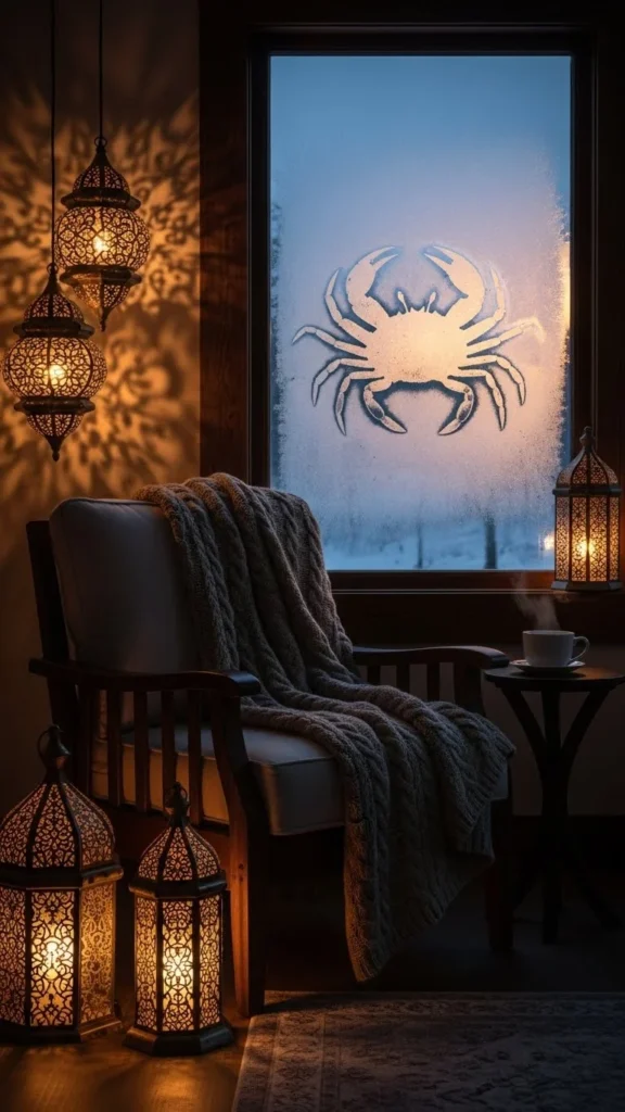 Cancer rising brings nurturing comfort. You may feel drawn to baking, gift-wrapping, or creating cozy spaces. Add small sentimental touches like photos or old ornaments. If emotions build, journal for five minutes. Keep gatherings small if that helps. Light a candle and enjoy the soft glow. Cancer rising energy supports gentle bonding.