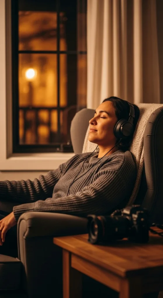 Sit or lie down while listening. Focus on sound layers. This shifts attention away from stress.