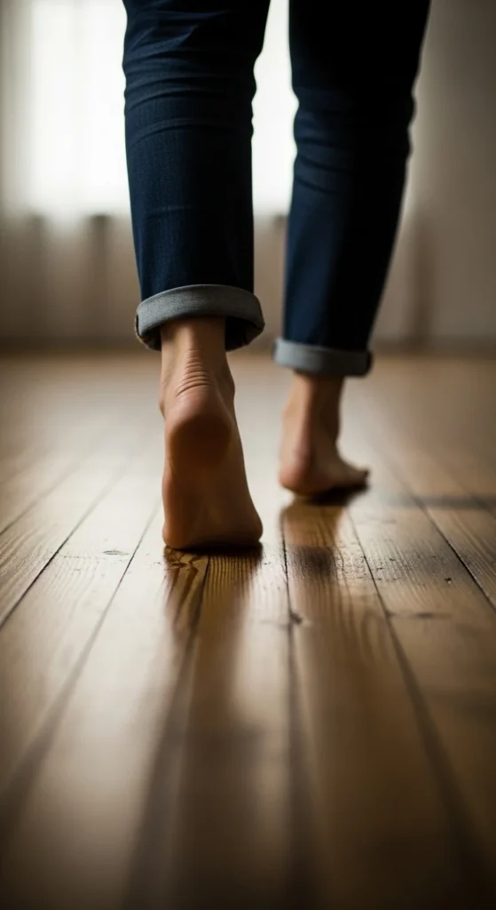 Notice temperature, texture, and pressure. Shift weight gently from heel to toe. This awareness pulls attention away from mental noise and into the body.