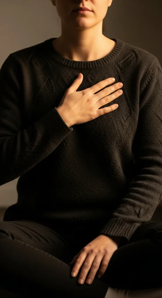 Hold for several breaths. Notice warmth and contact. This physical reassurance can calm emotional tension quickly.