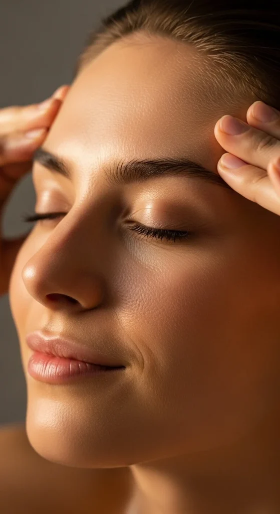 Face massage releases tension. Use gentle circular motions on temples and jaw.