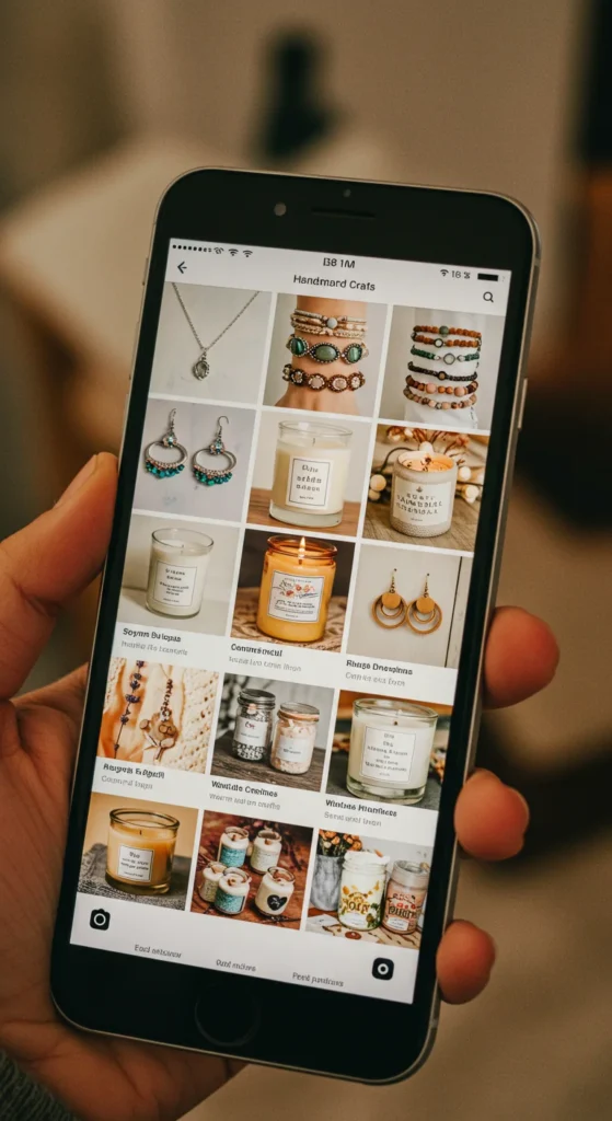 - Handmade crafts (jewelry, candles, knitted scarves)