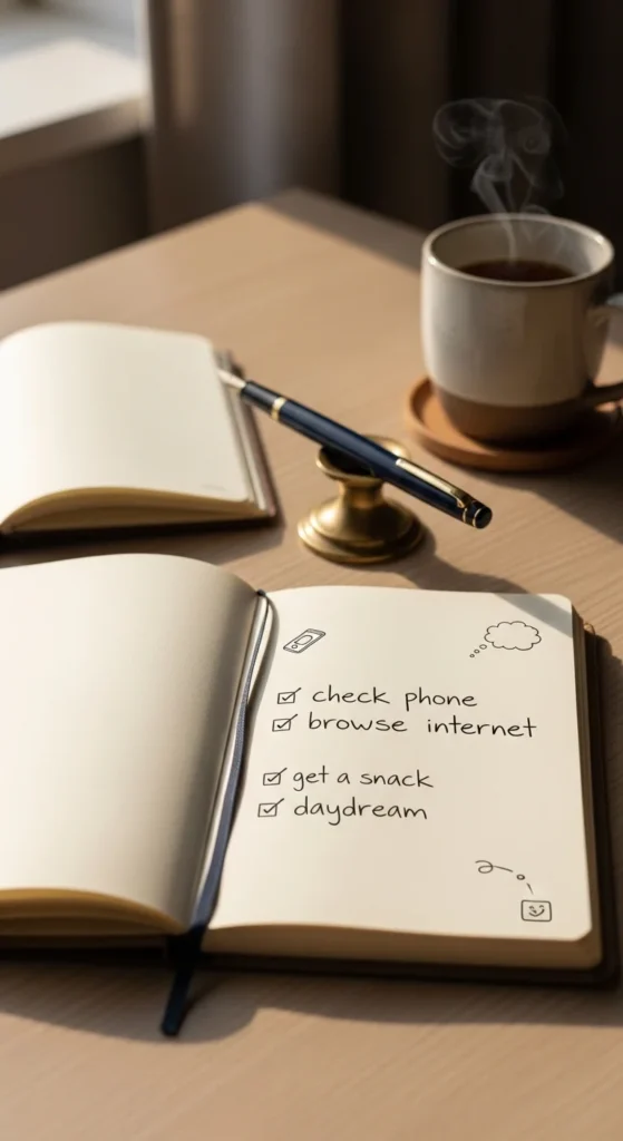 Write down things that distract you from your goals. It can be phone use, social media, or procrastination habits.