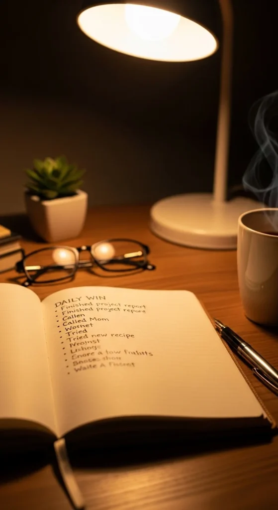 Write even the smallest achievements. It can be finishing a task or staying consistent.